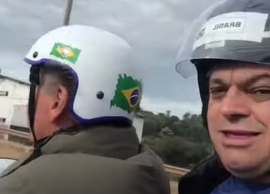 O ato contou com a presença do prefeito da cidade, joão rodrigues, que pegou uma carona na motocicleta conduzida por bolsonaro.